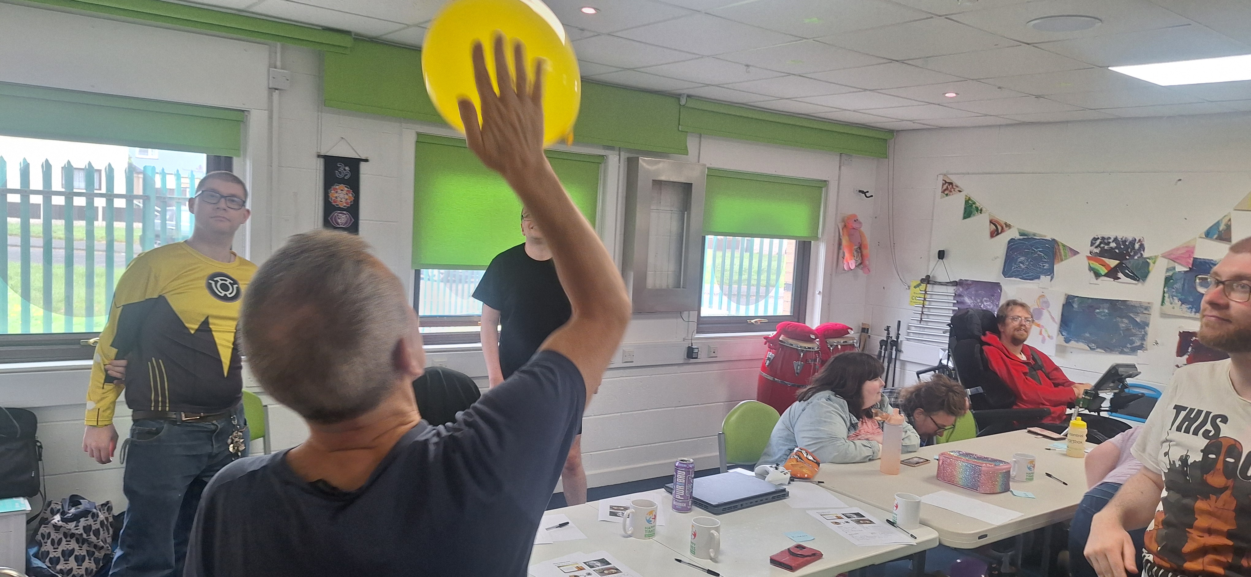 For our afternoon part, Heather did some team work with us that involved blowing up and passing balloons. We had to pass the balloon to our team mates and count. Our team was called Purple after the balloon colour. Everyone was amazing at controlling the balloon and kept count - our team managed 40 hits before it hit the floor and none of the balloons popped.