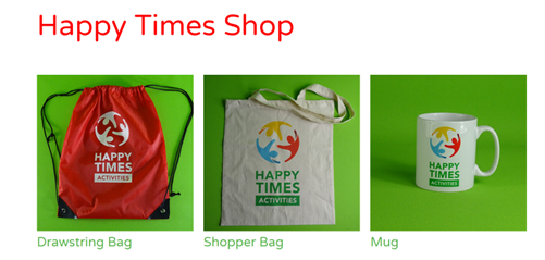Our Shop will be live on our website 1 Dec - just in time for Christmas! This is a direct result of people asking us for tops and bags, so it will be packed with stuff created by the Happy Times team and Participants and to launch it we have Monkey mascot T-shirts at the ready!!!! It will be up and running in time for Christmas too!